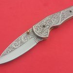4.5″ Folding Knife D2 Steel blade Engrave stainless Steel handle with leather sheath